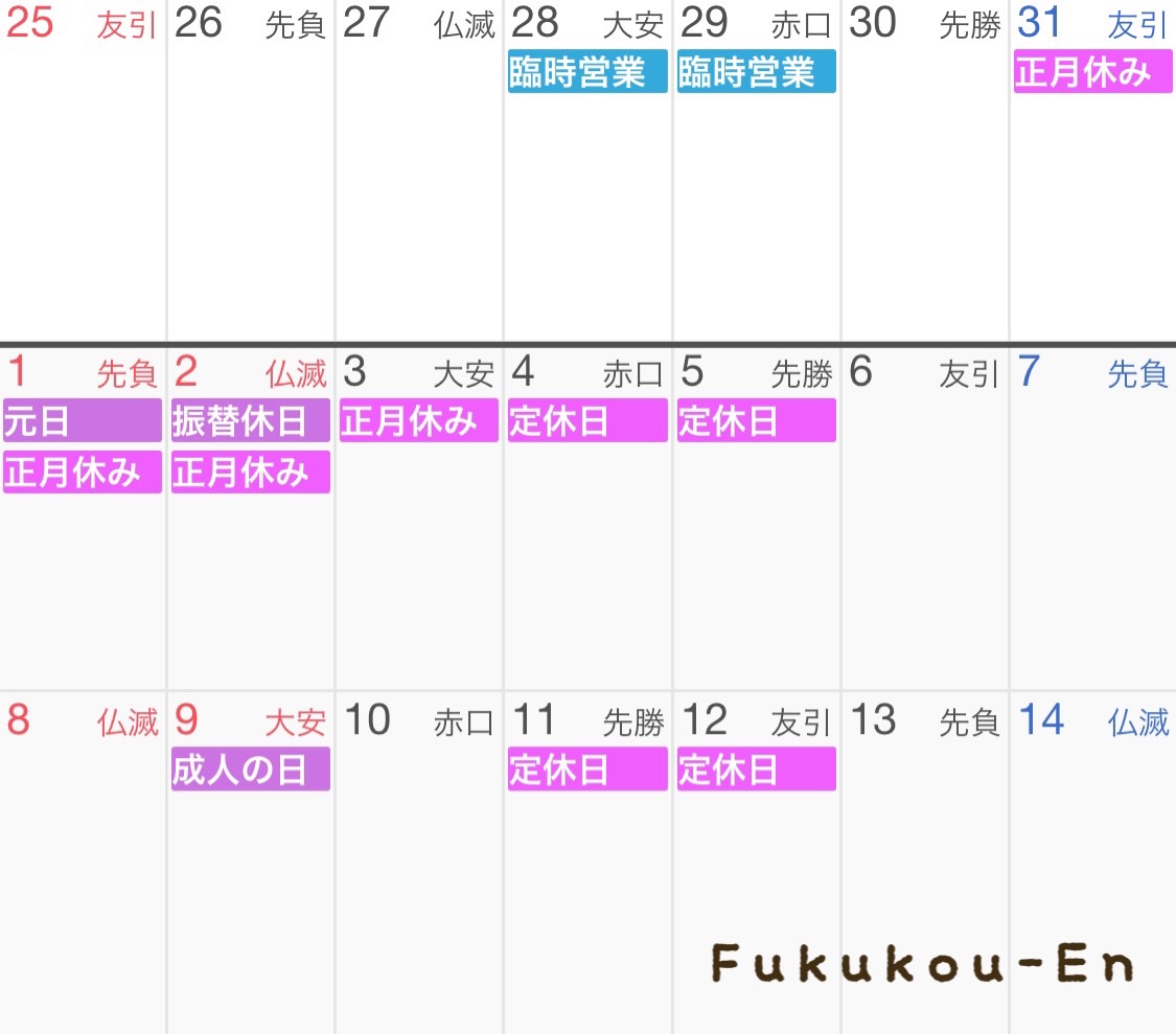 ※例年と大きく違いますので、ご確認の上ご予約お願いいたします。