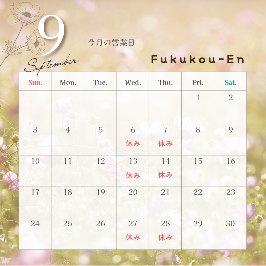 9月営業日のお知らせ