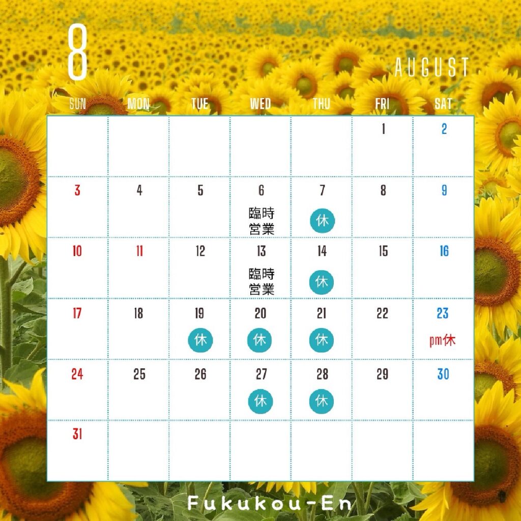 ※クリックまたはタップで拡大いつも当店をご利用頂きありがとうございます。8月の営業日をお知らせします。お盆前ですので、10日と11日は臨時営業致します。お花の値段が上がっております。入荷数も多くはありませんので、ご予約をおすすめします✨16...