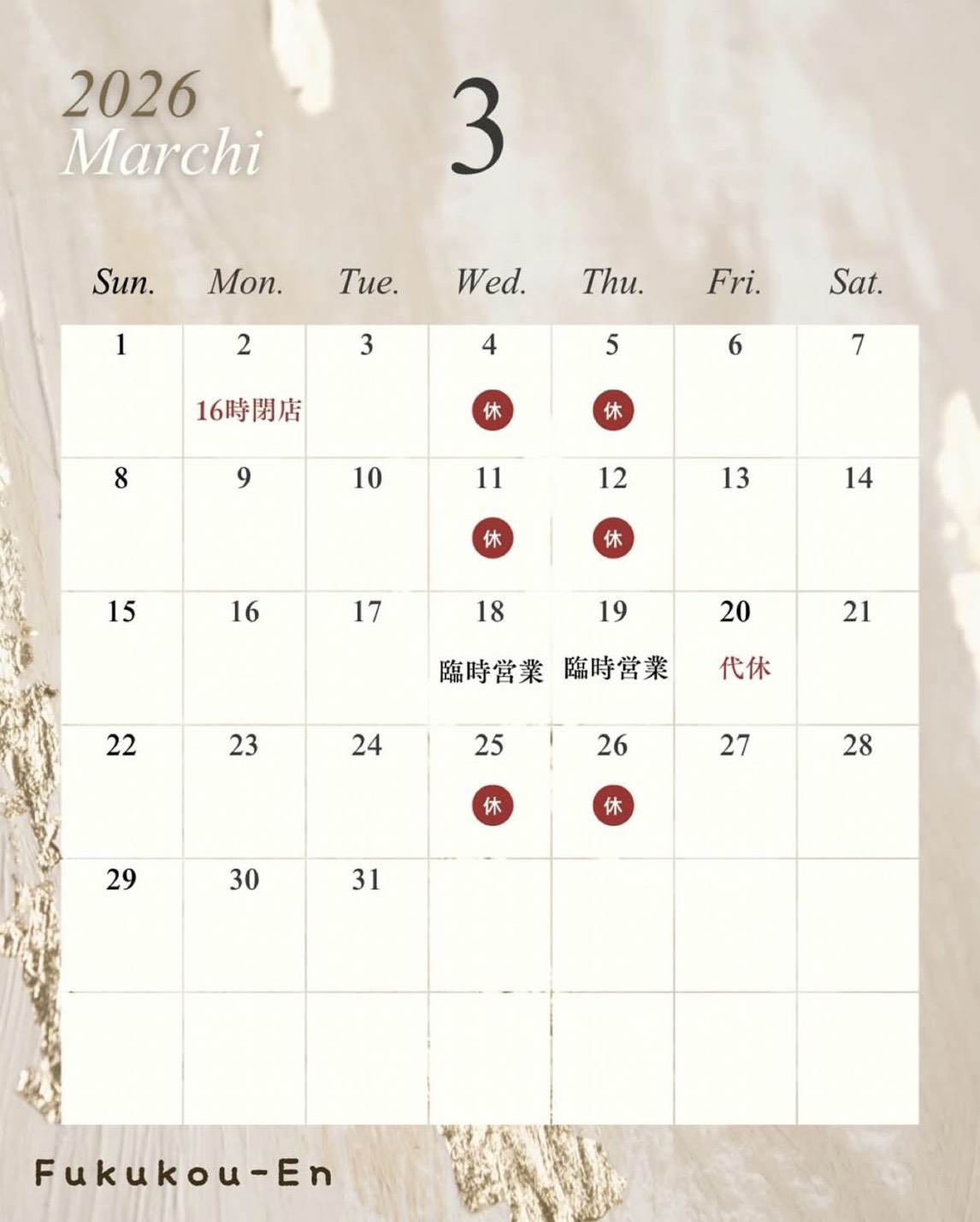 20日(金)代休とさせていただきます🙏