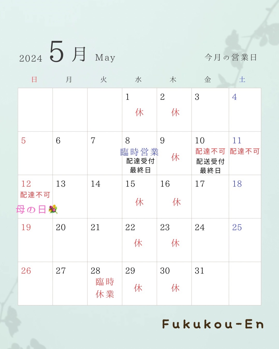 営業時間のお知らせ